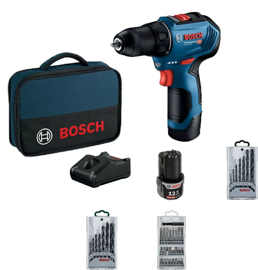 Aku. bušilica odvrtač Bosch GSR 12V-30 + 39-delni set