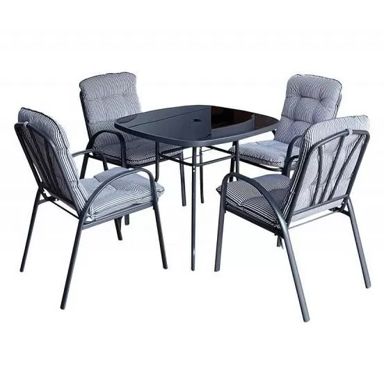 Bastenski set Veneto sto i 4 stolice crno sivi