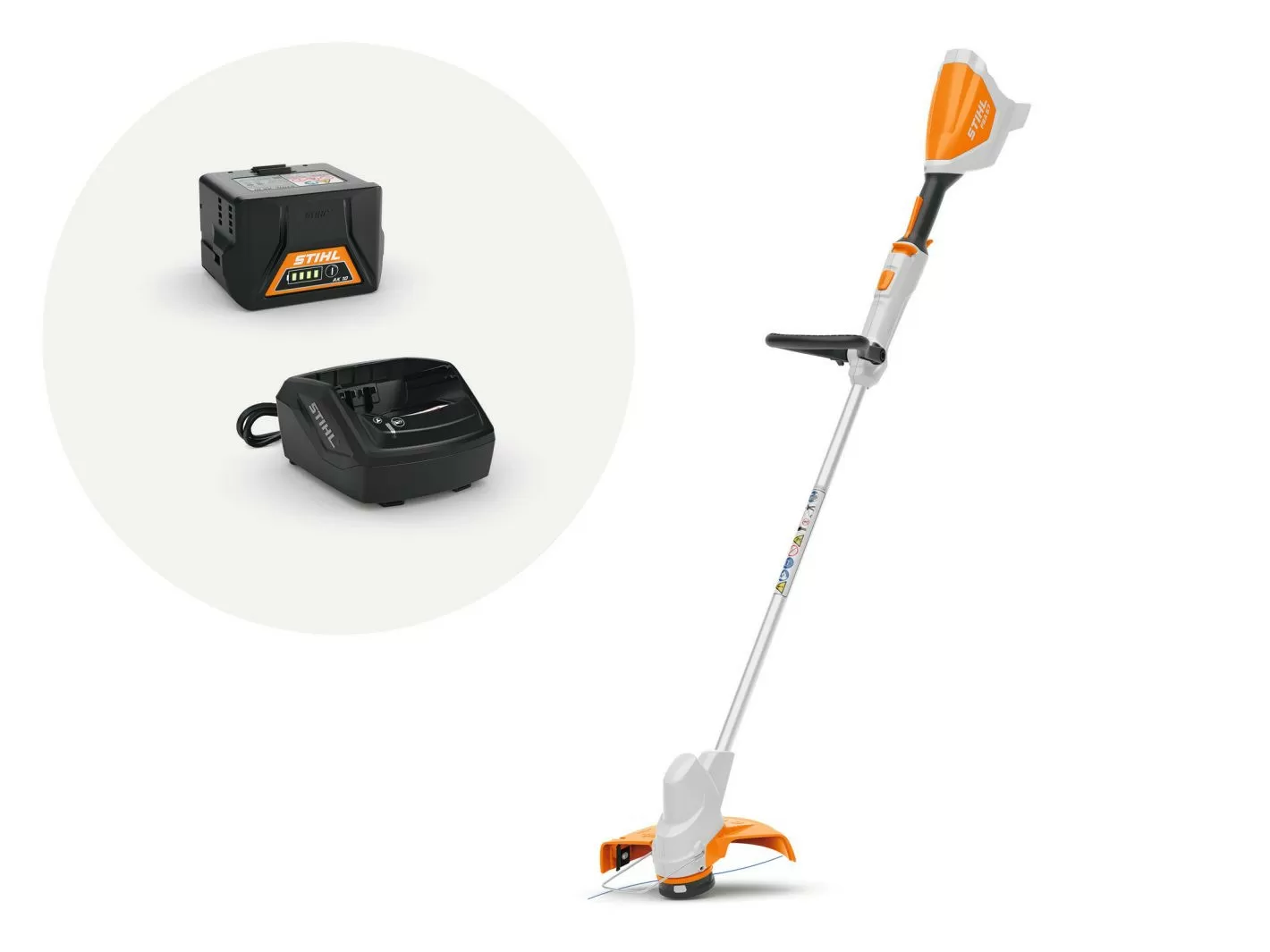 Ovaj trimer za travu je specijalno dizajniran kako bi vam omogućio da ergonomično radite: dužina vratila se može podesiti pritiskom na dugme. Takođe, možete da podesite okruglu ručku bez upotrebe alata. Ručka mekog prianjanja sa kontrolnom polugom izuzetno lako prianja i apsorbuje neke od generisanih vibracija. Precizno i lagano trimovanje oko biljaka poput drveća i šiblja, kao i oko objekata, podržava nosač odstojnik koji se može preklopiti na gore ili na dole. Komplet baterijskog STIHL FSA 57 trimera za travu sa AK 10 baterijom i AL 101 standardnim punjačem opremljen je standardnom STIHL AutoCut C 3-2 glavom za košenje sa trimi nitima, koja se može dopunjavati bez alata.